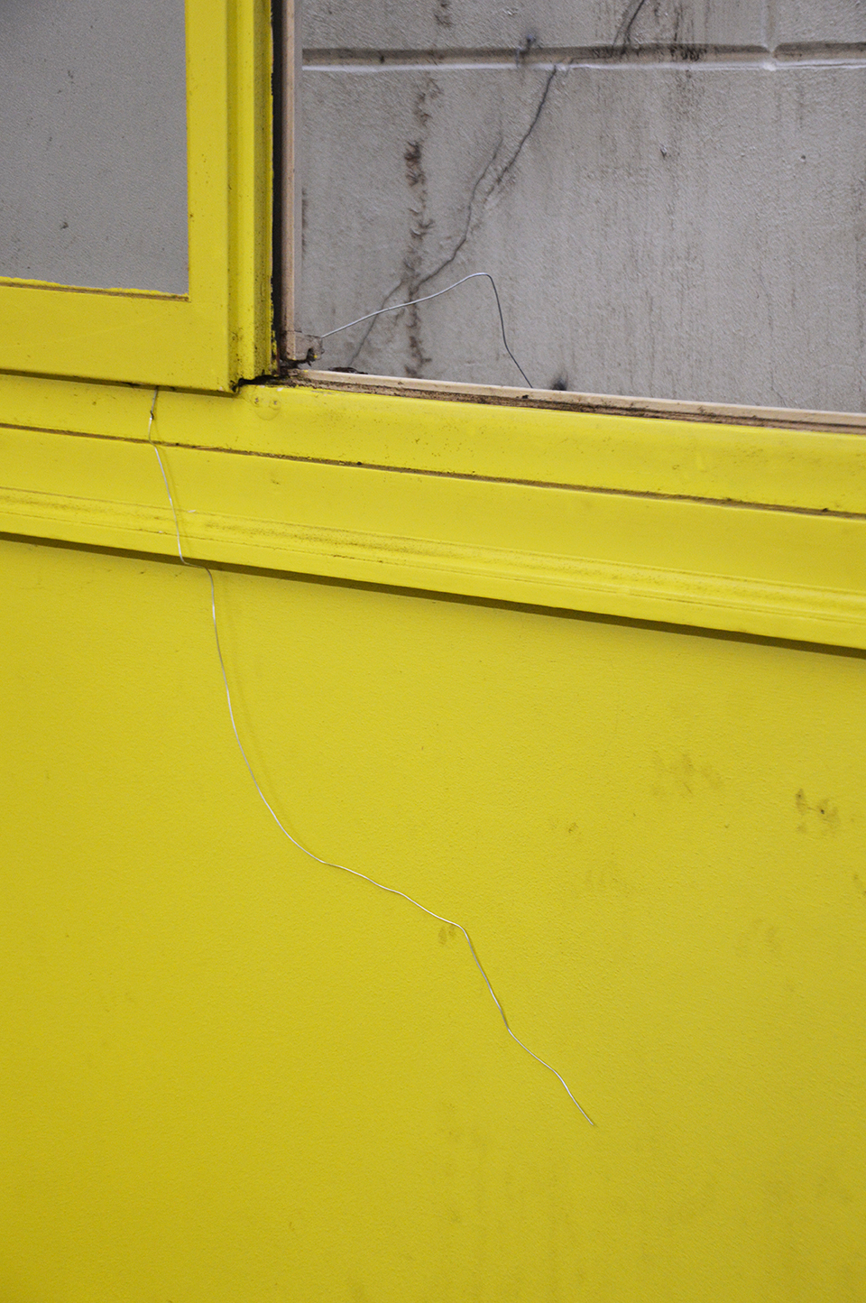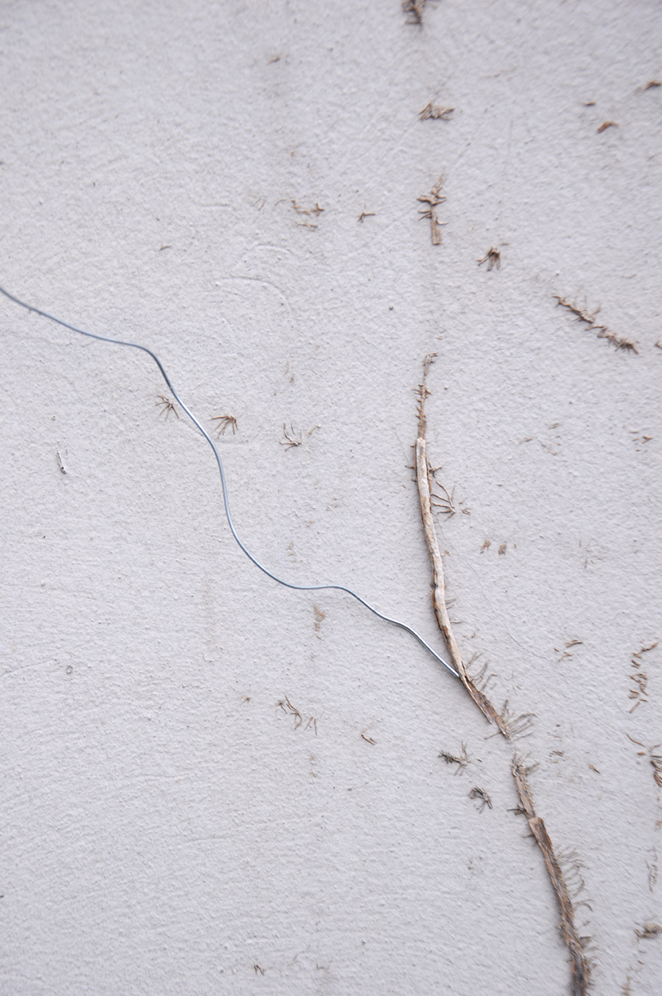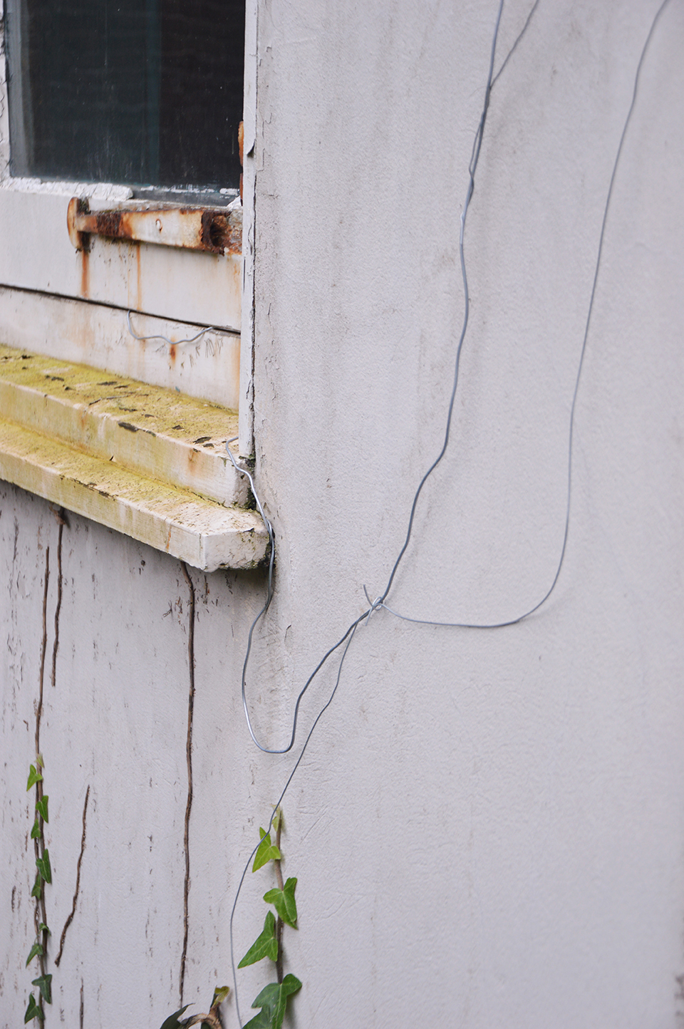 and fuis dedans, suis filant. Sculptures of wire on walls, in doors, outdoors frames of windows, indoors frames of photos.