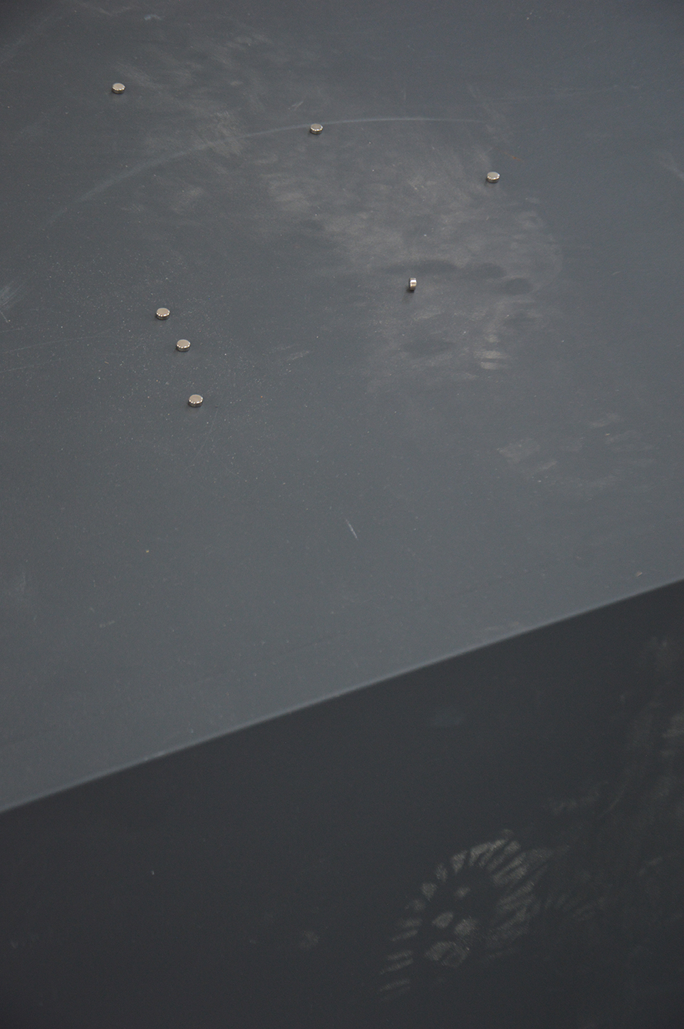 (2021) with costume designer and performer Élise Ehry; for Clovis' sons (keep fighting), for those whose legs were heavy once or always are. Magnets rain thrown by Anna Koutsafti. At La Box, Bourges.