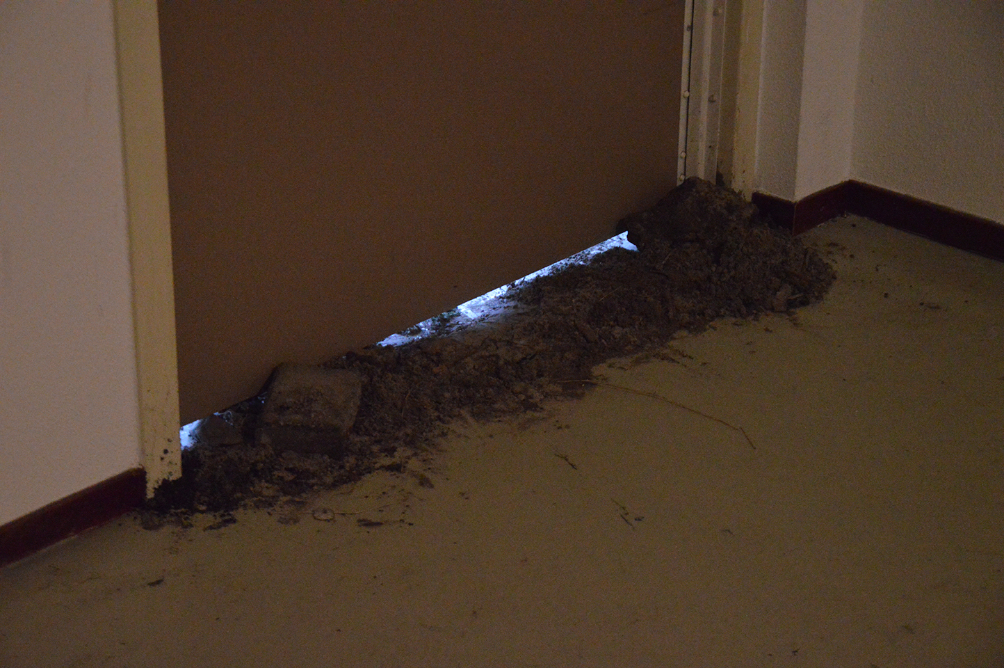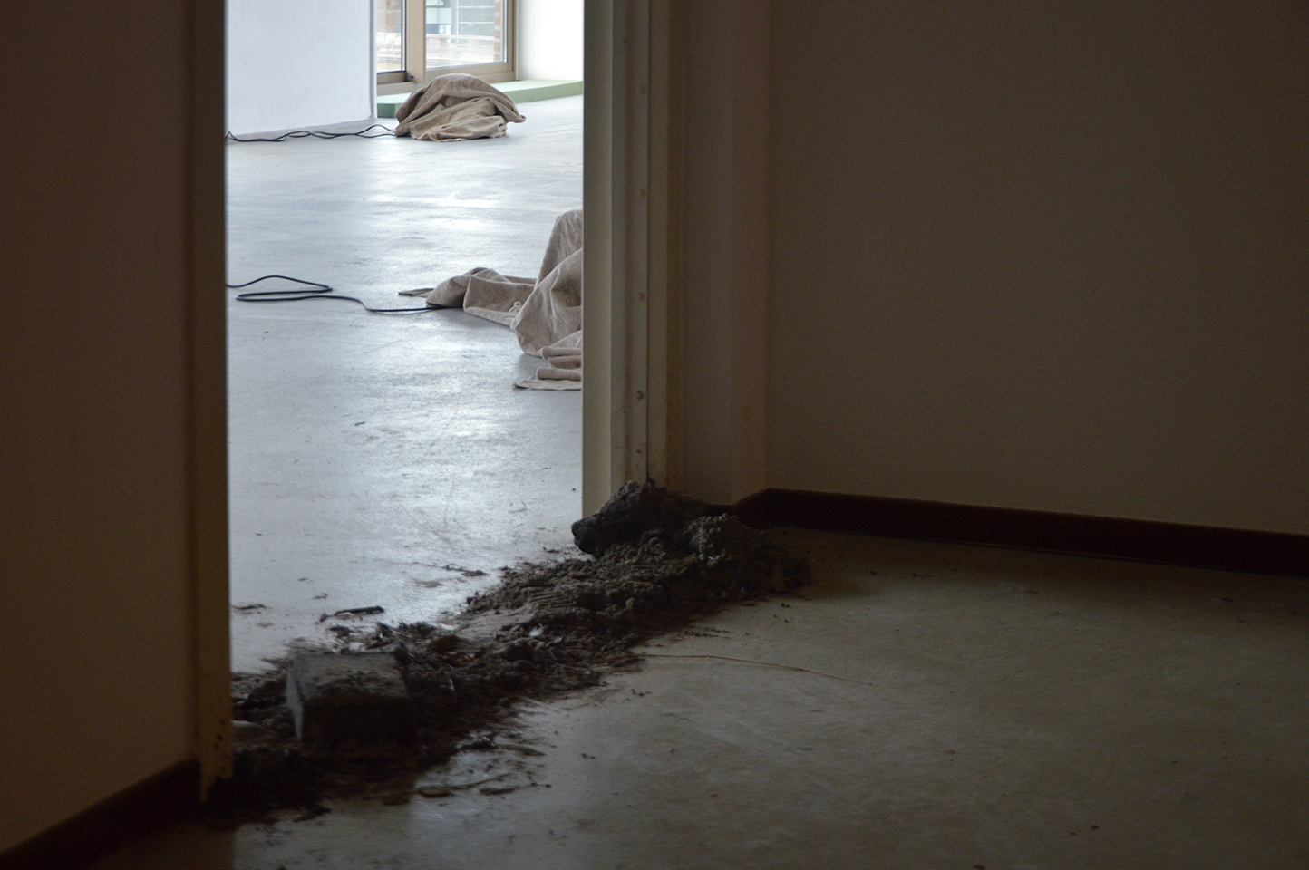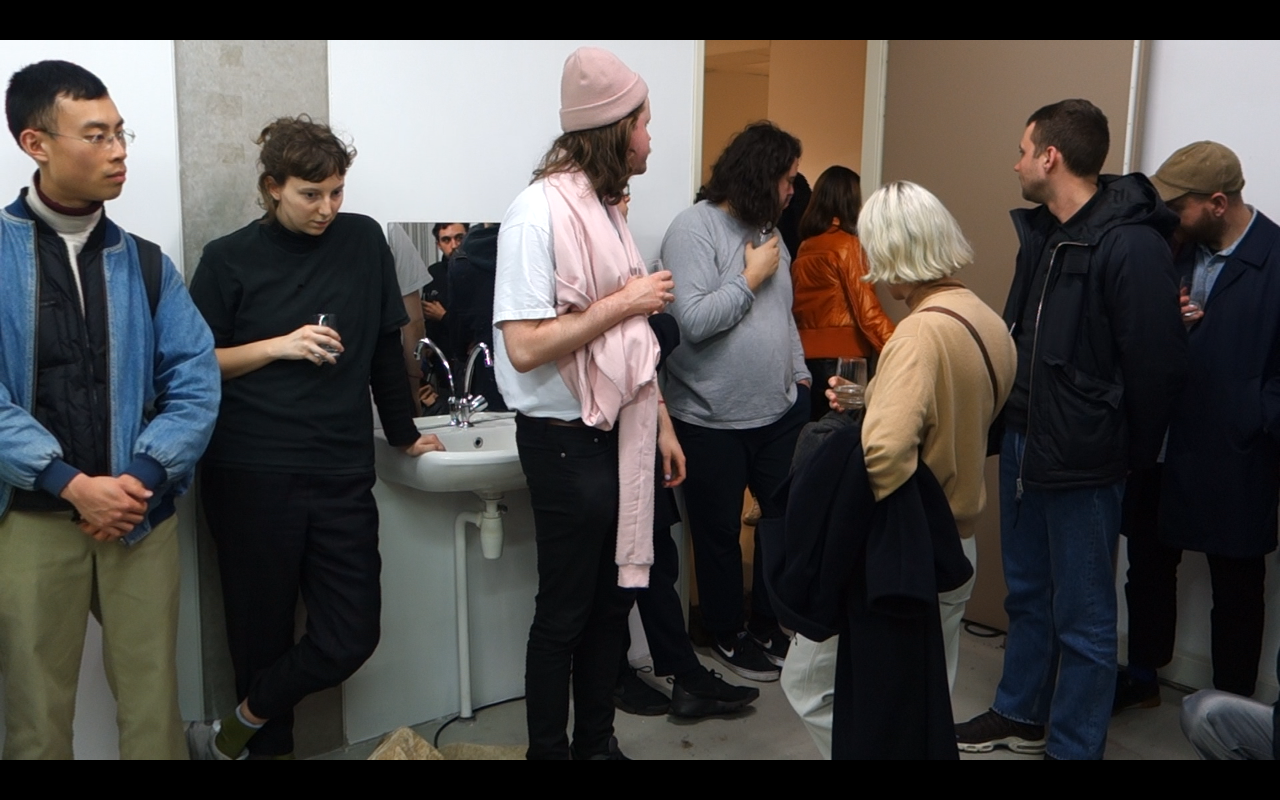 Performance with Sophia Dinkel & Mong-Hsuan Tsai. 2 figures communicate through the wall they are both stuck on, or are they entering this wall? A third one seems to respond from the other side. https://vimeo.com/330121339